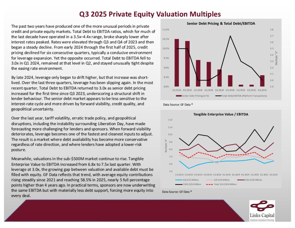 The CVCA recently announced Canada posted a record $56.5 billion in private equity investment through the first nine months of 2025 across 483 transactions, with an average deal size of $117 million, driven by 9 mega-deals, including five above $3.3 billion. It is an impressive headline, but it obscures the underlying reality. When the 9 deals over $500 million are removed, the mid-market tells a very different story. Through Q3 2025, Canada recorded 474 sub-$500M transactions totalling $5.14 billion, with a YTD average deal size of $10.8 million, the lowest mid-market average compared to any year in the past decade. For context, the 2021 mid-market peak saw $13.8 billion invested, averaging $17.4 million per deal. Even the softer markets of 2023 and 2024 posted higher averages at $12.7 million and $14.0 million, respectively.